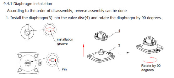 New model diaphragm installation is below , install the diaphragm into the disc and rotate with diaphragm by 90 degree without thread , it will be more easy without leaking