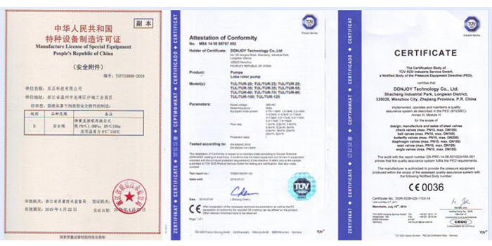 In addition, Donjoy lobe pump also has IOS9001, CE and other certifications, ensuring that Donjoy cam pump fully meets the hygiene requirements.